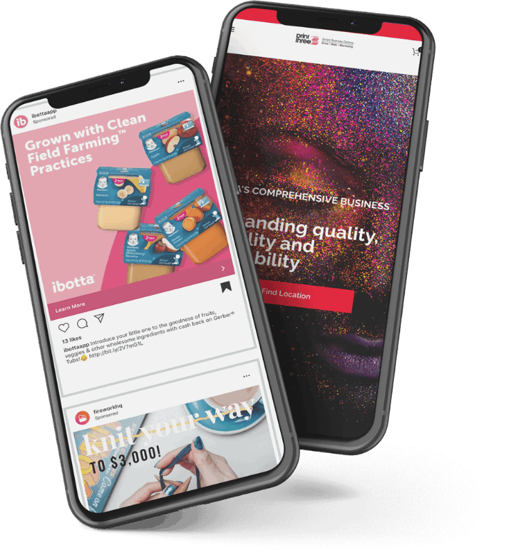 By improving your reach and visibility online with current and potential customers, Print Three Yonge’s social media management services will help you grow your brand by driving more traffic to your website, landing pages, and other relevant online channels. Paid social media advertising can get your products or services into consumers’ feeds instantly, while organic social media marketing is more cost-effective and flexible, with the ability to achieve other metrics besides pure sales (i.e. more engagement, more followers, newsletter and email list sign-ups, etc.).